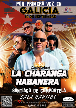 "Este 14 de septiembre, la Sala Capitol de Santiago de Compostela se llenará de magia y sabor cubano con La Charanga Habanera. Ven a vivir una noche vibrante, llena de pasión y energía, donde la música te hará latir el corazón al ritmo de La Habana. ¡No faltes a este encuentro inolvidable!"